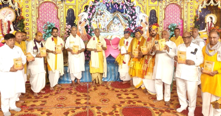जयपुर। आराध्य श्री राधा गोविंद देवजी मंदिर के सत्संग भवन में तीन दिवसीय गोस्वामी श्रीहित हरिवंश महाप्रभु का 551 वां प्राकट्योत्सव का समापन हुआ । समापन अवसर पर श्री हित हरिवंश महाप्रभु का महाराज का प्राकट्योत्सव भक्ति भाव से मनाया जिसमें बधाइगान और प्रवचन संकीर्तन का आयोजन हुआ आराध्या गोविंद देव जी मंदिर के महंत अंजन कुमार गोस्वामी ,त्रिवेणी धाम से राम रिछपाल दास महाराज , सरस निकुंज से अलबेली माधुरी शरण जी महाराज, सियाराम दास जी, धर्म प्रचारक विजय शंकर पाण्डेय और कई संत महंतों ने आयोजन में शिरकत की मंदिर महंत अंजन कुमार गोस्वामी ने संतों का सॉल दुपट्टा प्रसाद राधा गोविंद देव जी की छवि देकर सम्मानित किया राष्ट्रीय अध्यक्ष सुरेश टाक ने आगंतुक संत महंतों का साल और श्री फल देकर सम्मानित किया इस मौके पर हरिवंश जी की वाणी पुस्तक का विमोचन संतो के सानिध्य में हुआ कमल मुकुट, किशोर कुमार, कैलाश चन्द सिंघल, स्वामी हरिराम कौशिक, रमेश चंद्र डेरे वाले, मोहित अग्रवाल, ललित मोहन अग्रवाल एवं अन्य ने पूजा-अर्चना कर संतों का आशीर्वाद लिया ।