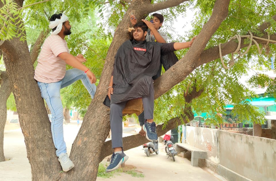 ” नीम के पेड़ की चोटी पर बागडा बाबा के बालो की कटिंग”