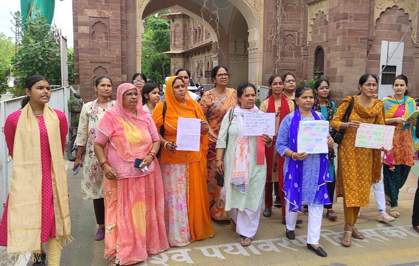 जोधपुर । राष्ट्र सेविका समिति व मरुधरा महिला मंच के सँयुक्त तत्वावधान में प्रान्त भर के जिला केंद्रों पर प्रधानमंत्री के नाम ज्ञापन देकर पश्चिम बंगाल के संदेश खाली कुच बिहार व उत्तर दिनाजपुर चोपरा में महिला के साथ हो रहे उत्पीड़न अनुचित असभ्य बर्ताव का विरोध कर कड़ी कार्यवाही की मांग की गई।