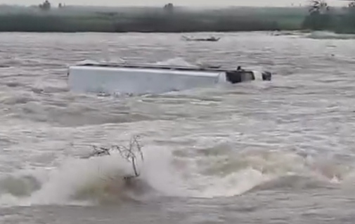 टोंक जिले के मालपुरा कस्बे में स्थित टोरडी सागर बांध की चादर के बहाव में मंगलवार को एक रोडवेज बस बह बई,
