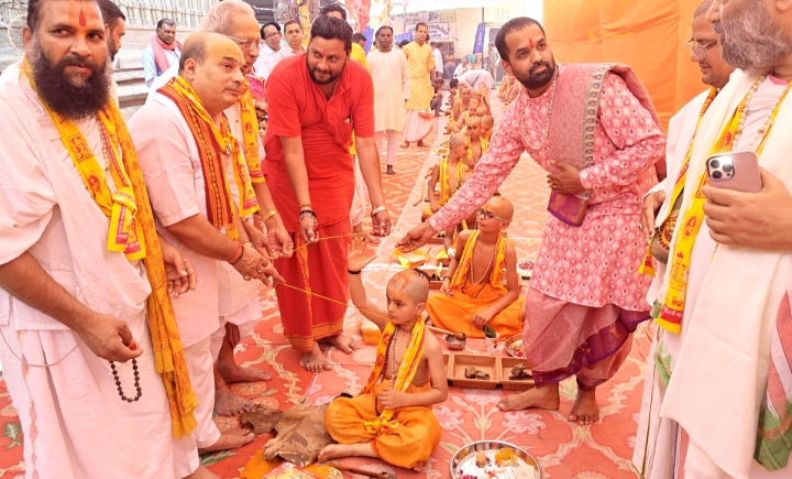 संत महंतों ने अभिजीत मुहूर्त में धारण कराया जनेऊ