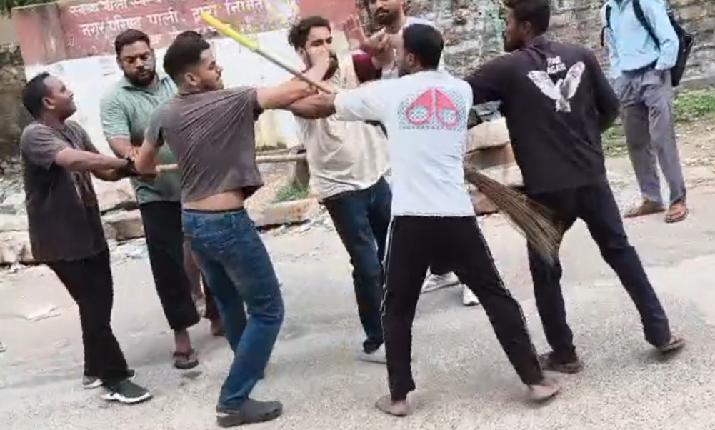 पाली । अंबेडकर सर्किल बीच सड़क पर नर्सिंग एवं सफाई कर्मियों के बीच मारपीट की घटना: सफाई कर्मचारियों ने किया कार्य बहिष्कार