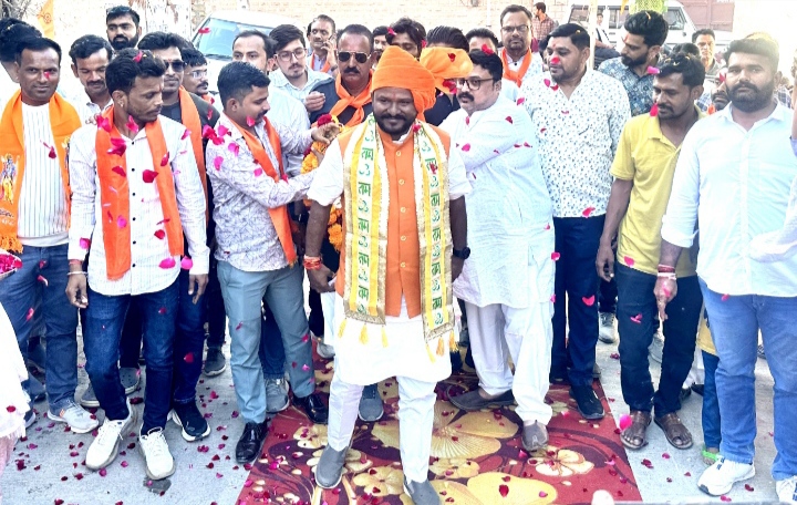बजरंग दल राष्ट्रीय संयोजक बनने के बाद प्रथम बार पाली पहुँचे किशन प्रजापत कार्यकर्ताओ ने किया स्वागत