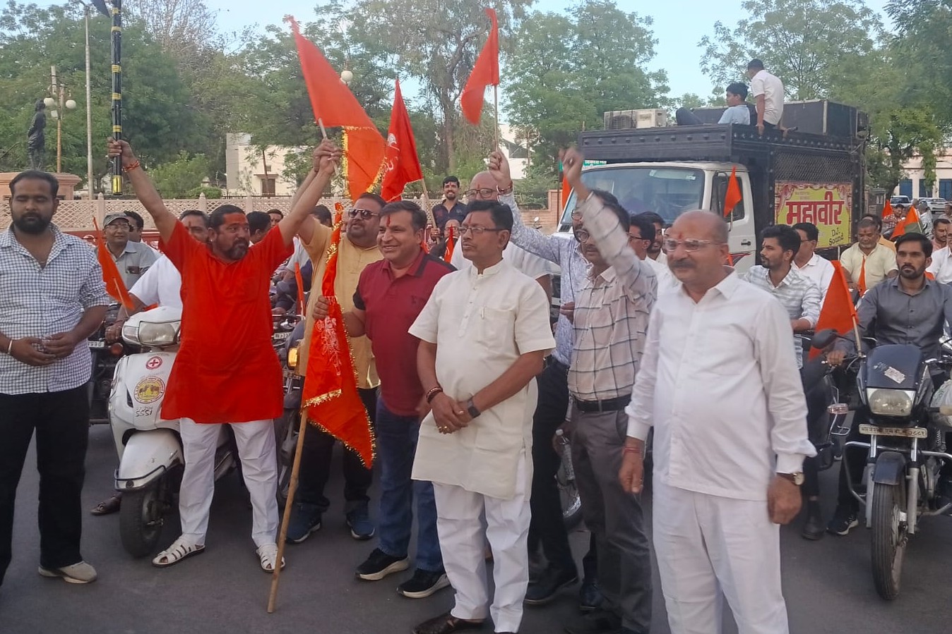 सांयकाल 6 बजे से वाहन रैली जयनारायण व्यास सर्किल से डाक्टर मदन सिंह राजपुरोहित के निर्देशन हरी झंडी दिखाकर शहर के प्रमुख मार्गो से होकर सूरजपोल पर हनुमान चालीसा का पाठ पढकर विसर्जन हुआ