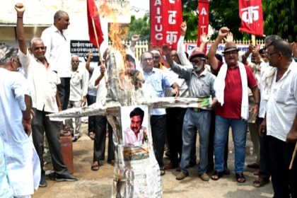 नाराज रोडवेज कर्मचारियों ने पूर्व यातायात मंत्री यूनुस खान पुतला जलाया
