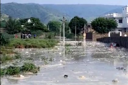 जयपुर स्थित “नूर बांध” टूटा ,बस्ती हुई जलमग्न , रास्ते हुए बंद